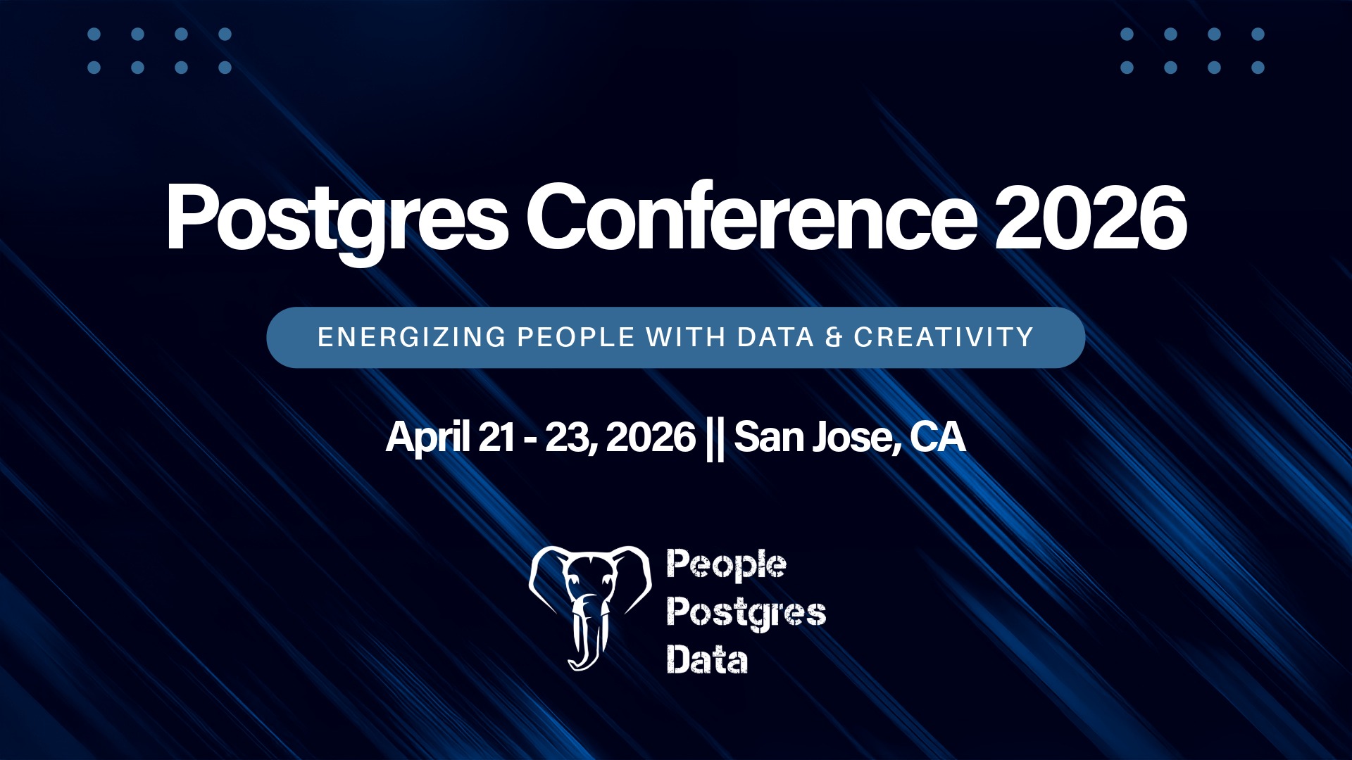 Join us April 21-23 at the Hilton San Jose for three days dedicated to the Postgres community. Since 2007, Postgres Conference has been more than a technical event—it's been a gathering place where hundreds of thousands of people have advanced their skills, built lasting professional relationships, and contributed to strengthening the entire Postgres ecosystem.